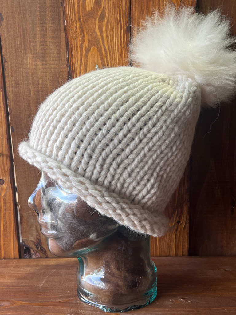 Composition: 100% baby alpaca, handmade with alpaca fur pompom.